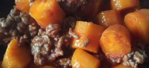 Dans la cuve du Cookéo, faire revenir l’oignon émincé et la viande en mode dorer. Ajouter les carottes coupées en rondelles.