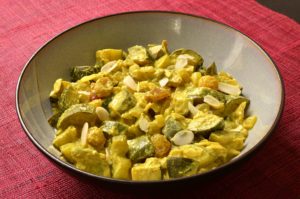 Risotto de poulet curry, courgettes et carottes