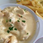 Quand le maroilles est fondu, ajouter la crème fraîche et bien mélanger