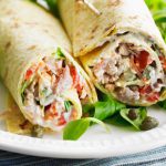 Enrouler le tout et découper en 2 petits wraps ou en petits tronçons.